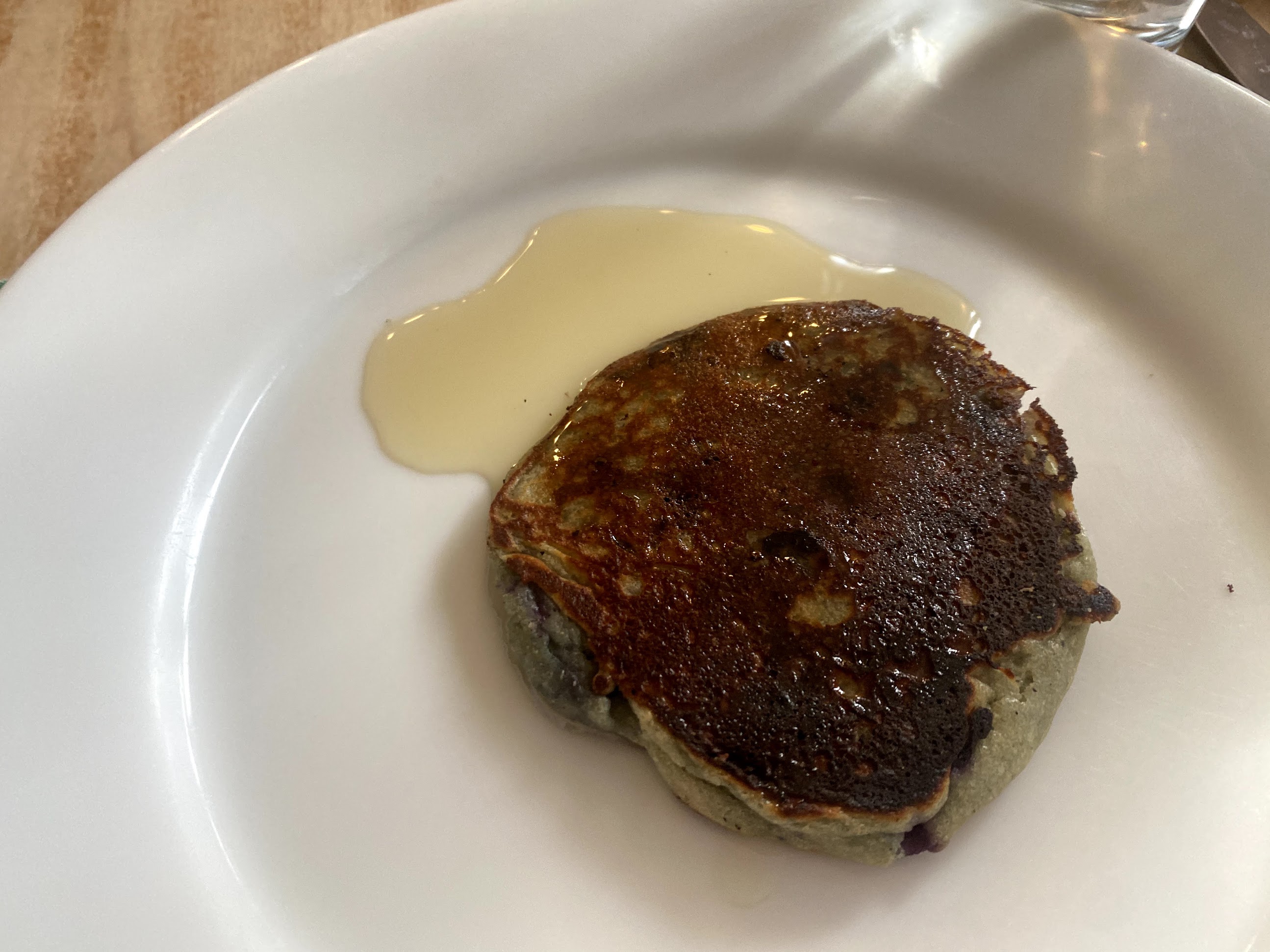 On a Sunday morning, we were just completed the finishing boil for a batch and poured it straight out of the pot onto fresh, blueberry pancakes: