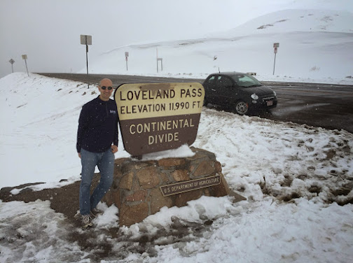 We hopped in and headed west on I-70, winding our way up into the mountains. An uncharacteristically thick cloud cover and rain came down as the powerless little car struggled up the mountains, feeling increasingly anemic with each foot of altitude gained.