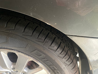 If you lie on the ground and look up at the fender, you can see where the metal folded in and where the real problem was: