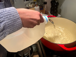 After the collection process, it was time to boil. We didn't do anything fancy, just collected it in a Dutch oven and turned up the heat.