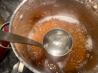 Here's a shot close to the finishing stage, with a ladle-full of fresh sap for contrast.